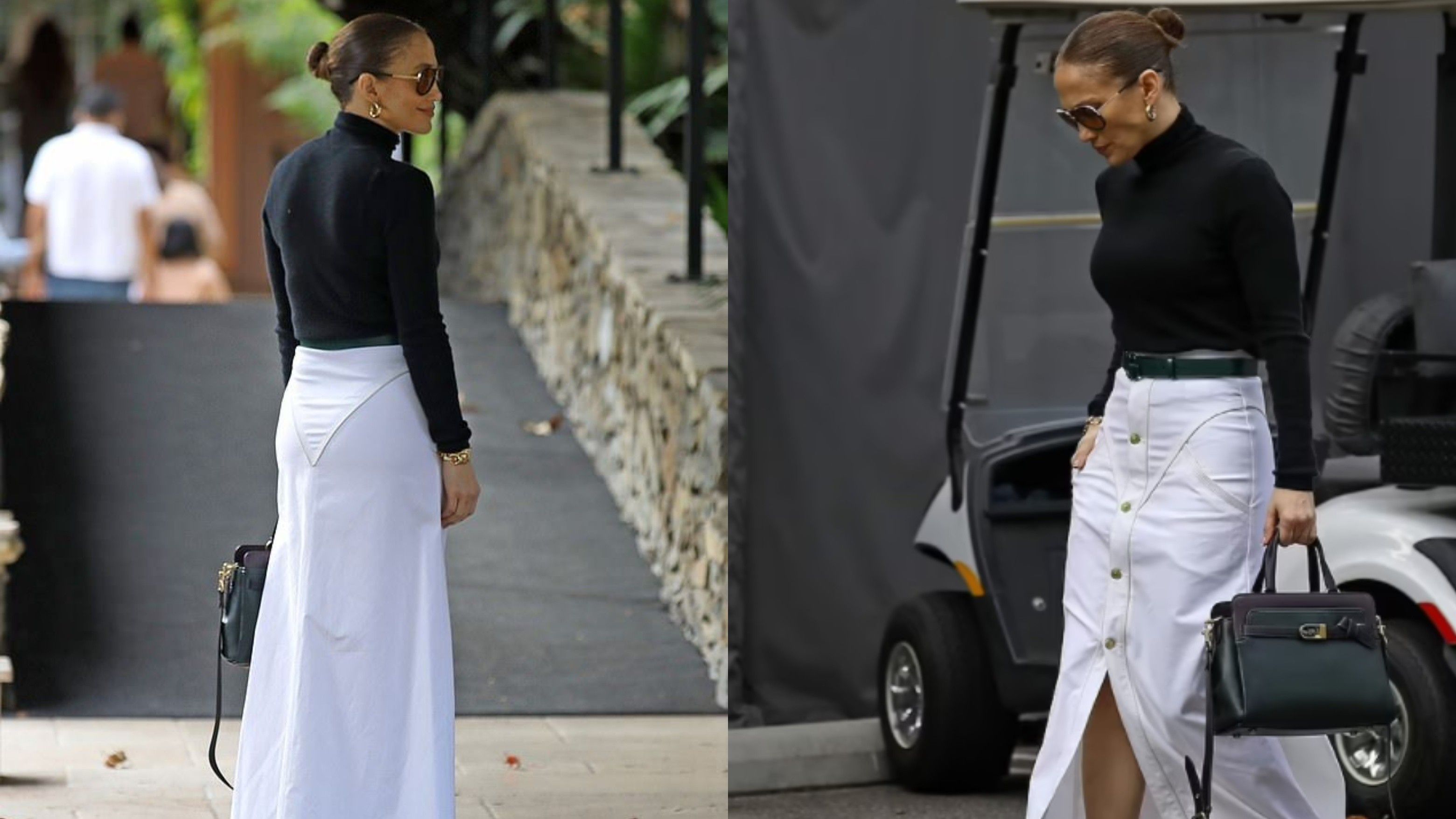 Ajo e kombinoi fundin e mrekullueshëm me një rollkë të thjeshtë të zezë me mëngë të gjata, për të qëndruar ngrohtë në ditën me re.