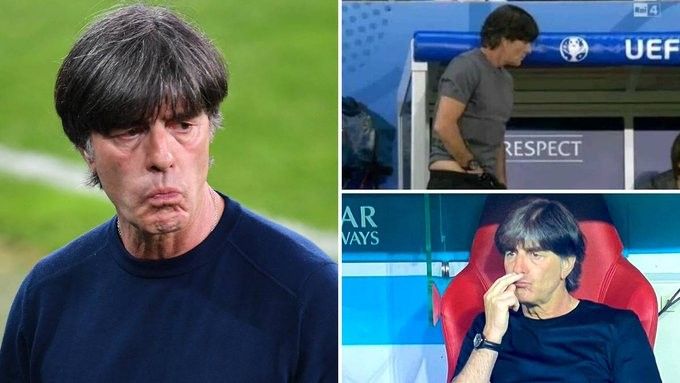 Loë u kap nga kamerat duket futur duart si para dhe mbrapa në pantallona e tij në fitoren 2-0 të Gjermanisë ndaj Ukrainës në Stade Pierre-Mauroy në Lille.