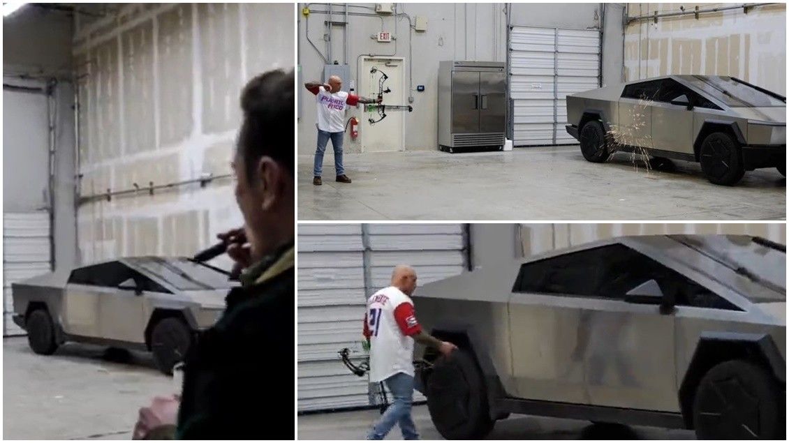 Në këto pamje, Regan goditi Cybertruckun me një shigjetë për të parë se si do të ishte kapaciteti i durueshmërisë tek kamionçina elektrike.
