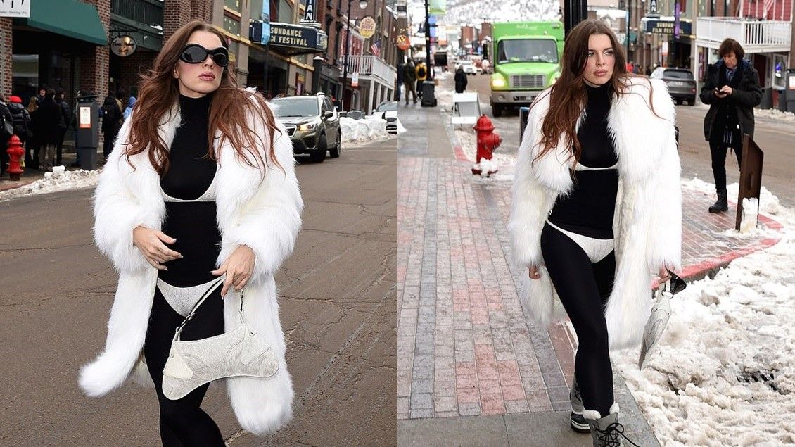 Teksa shëtiste rrugëve, influencuesja shfaqi formën e saj të tonifikuar me një kostum të zi trupor me bikini të bardha mbi, ndërsa shëtiti rrugëve të qytetit të skive, ku mbahet Festivali i Filmit Sundance me famë botërore çdo janar, shkruan DailyMail.