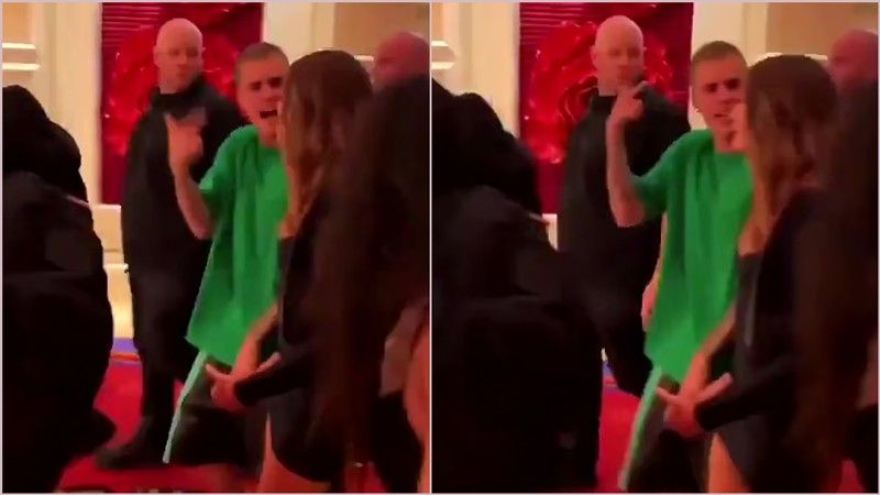 Justin dhe Hailey po shoqëroheshin nga shumë pjesëtarë të sigurimit përgjatë korridorit të kazinosë, ndërkohë që fansave të pranishëm ua ka tërhequr vëmendjen reagimi i këngëtarit të famshëm.