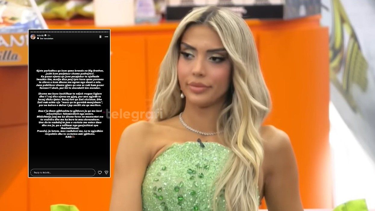 Brikena Selmani ka bërë një reagim të gjatë në Instagram pas përfundimit të eksperiencës së saj në Big Brother VIP Albania, ku ka folur për periudhën brenda dhe jashtë formatit, duke ngritur akuza për padrejtësi dhe sulme ndaj imazhit të saj.