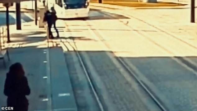 Në momentin që po afrohej treni në një stacion në Andalusia të Spanjës, polici vepro me shpejtësi dhe e largoi një kalimtare të verbër, që e kishte humbur kontrollin.