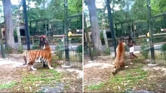 Një video shfaq momentin kur tigri i vërsulet një gruaje, e cila kishte kapërcyer rrethojat mbrojtëse të kopshtit zoologjik në New Jersey me qëllim që t’i afrohet kësaj kafshe të egër.