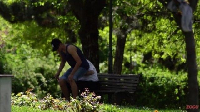 Këtë herë, është një i ri, që luan rolin e të verbrit që shqetëson personat në park.