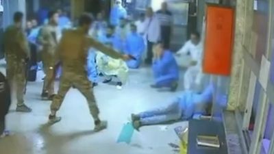 Imazhet e kamerave të sigurisë tregojnë burra me uniforma ushtarake duke qëlluar për vdekje një vullnetar të veshur me uniformë mjekësore nga afër, ndërsa një turmë punonjësish të tjerë të tmerruar shëndetësorë mbahen nën kërcënimin e armëve me duart lart, transmeton Telegrafi.