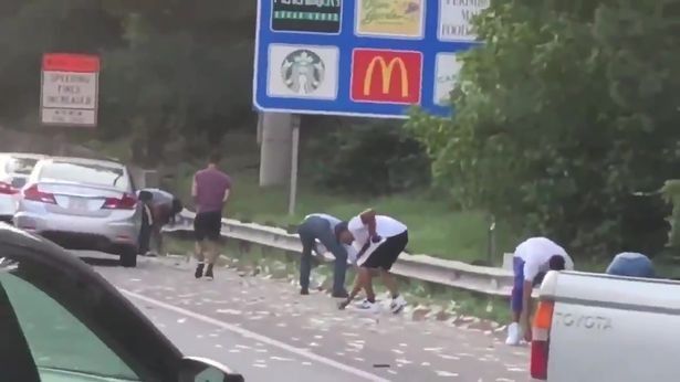 Shoferë të shumtë kishin ndalë veturat e tyre në mes të një autostrade, për të mbledhur paratë që ishin shpërndarë nëpër asfalt.
