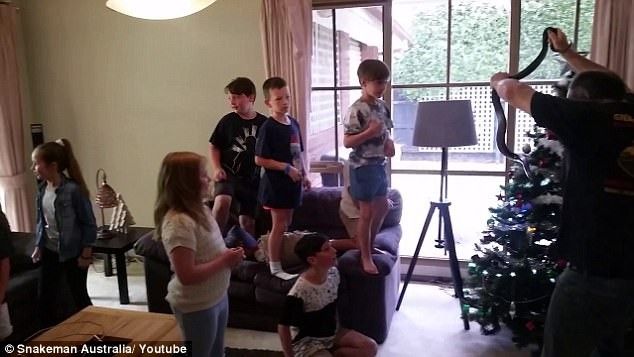 Kapet gjarpri që ishte mbështjellë për bredhi, në një dhomë me shumë fëmijë (Video)