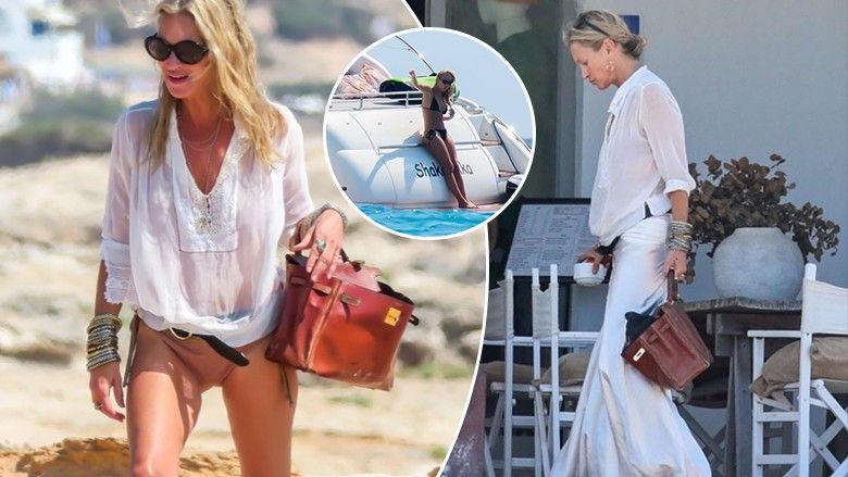 Supermodelja britanike, Kate Moss, ka tërhequr vëmendjen teksa shfaqej me bikini neutrale dhe një çantë luksoze “Hermès Birkin” në krah, gjatë pushimeve të saj në Spanjë.