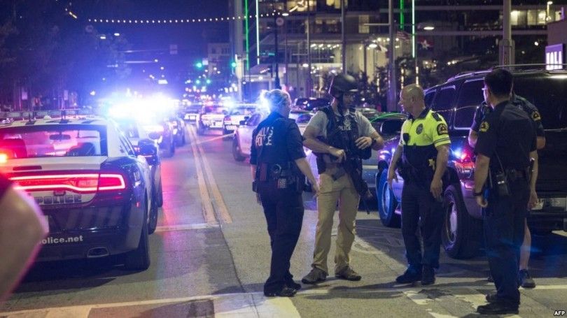 Në Dallas policia tha se katër oficerë janë vrarë dhe 7 të tjerë janë plagosur nga dy snajperë.