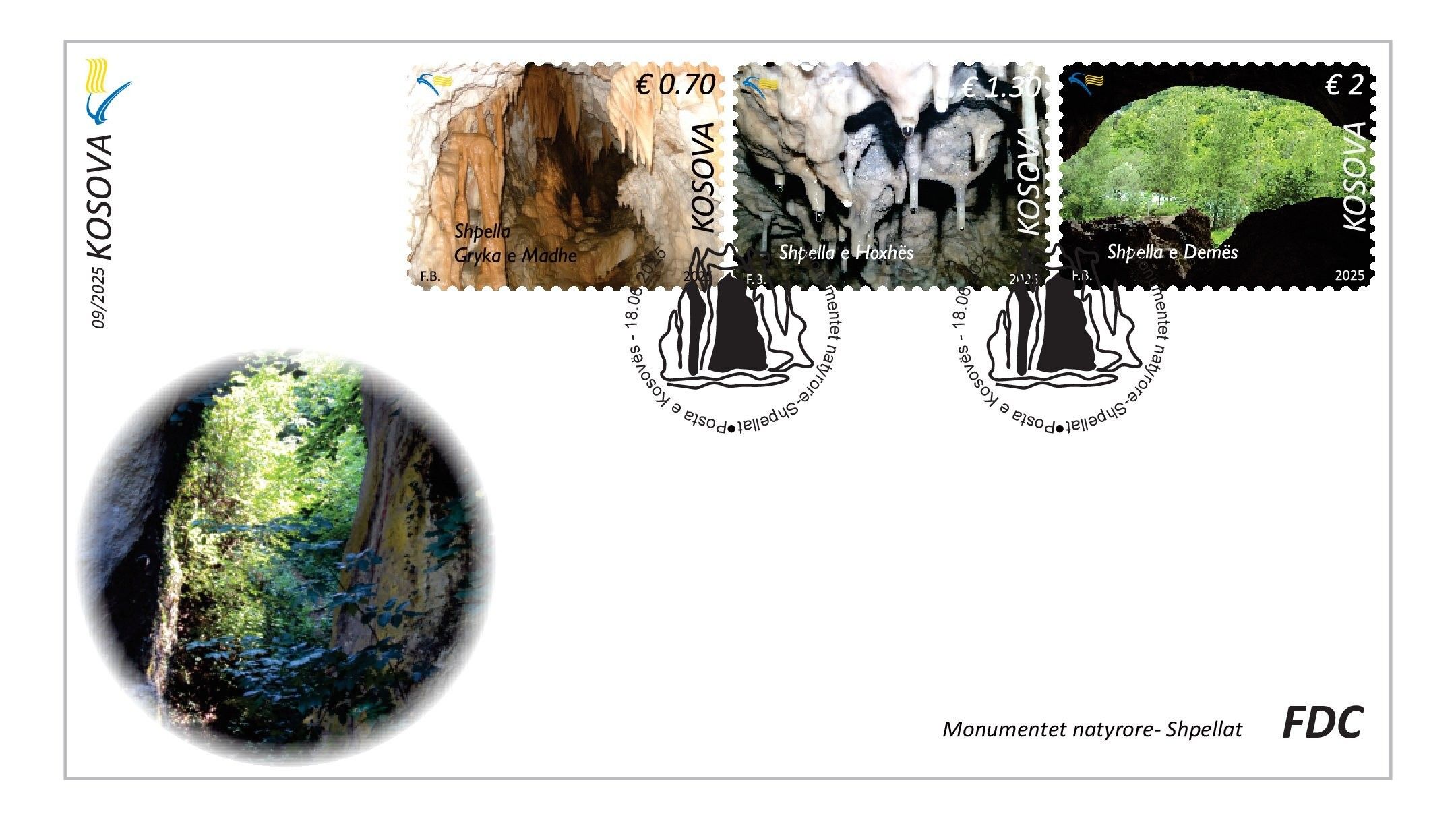 Posta e Kosovës, në bashkëpunim me Ministrinë e Mjedisit, Planifikimit Hapësinor dhe Infrastrukturës, përkatësisht me Institutin e Kosovës për Mbrojtjen e Natyrës, lansoi sot emisionin më të ri të pullave postare kushtuar katër prej monumenteve natyrore më të veçanta të vendit: Shpella e Kusarit, Shpella “Gryka e Madhe”, Shpella e Hoxhës dhe Shpella e Demës.