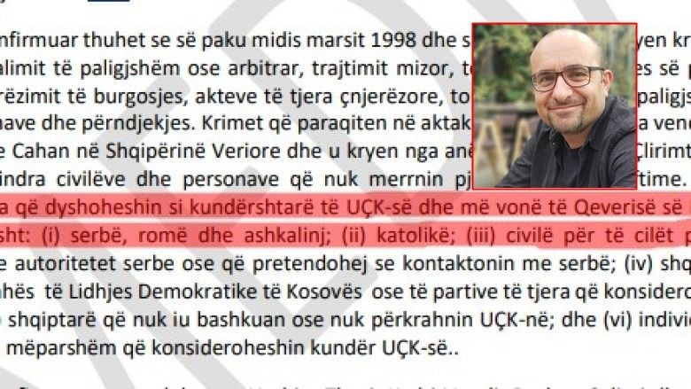 Në një pjesë të kësaj aktakuze ku pretendohet për krimet që kanë kryer krerët e UÇK-së, Specialja ka paraqitur katolikët si grup i veçantë, bashkë me serbët, ashkalinjët dhe romët.