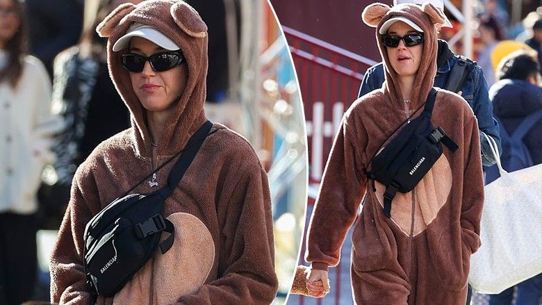 E veshur me një kostum në formë arushi, me veshë të rrumbullakët dhe të varur, Katy dukej e qetë dhe e përmbajtur.