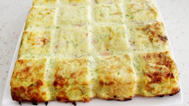 Ajo është e thjeshtë; përzihen të gjithë përbërësit e lëngshëm së bashku, më pas shtohen perimet e shkrira e kulluara dhe në fund, mielli i përzier me sodën e kripën, derisa të bëhet një brumë pak i hollë.