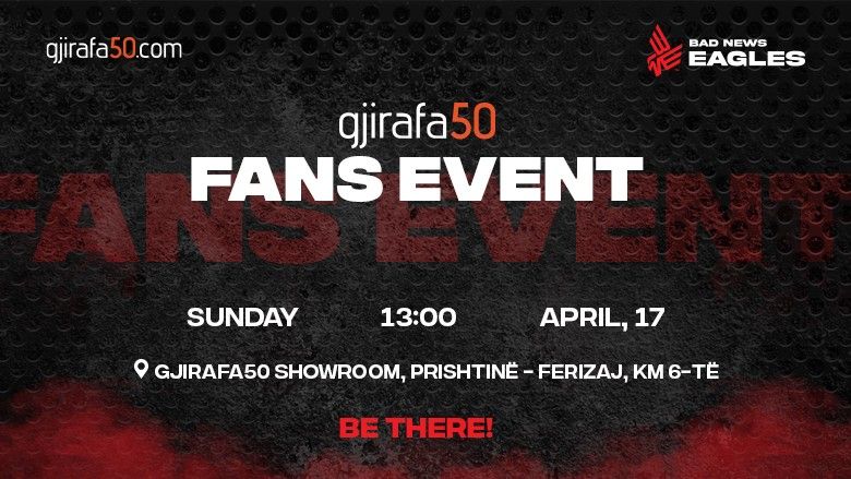 Gjirafa50 është gjithmonë afër komunitetit të E Sports dhe ky event po organizohet me qëllimin që të gjithë fansat e ekipit Bad News Eagles të kenë mundësi të përkrahin ekipin e tyre para se lojtarët të nisen për në Rumani në eventin e PGL Major 2022 RMR ku do të kërkojnë kualifikimin historik në PGL Major Antwerp 2022.