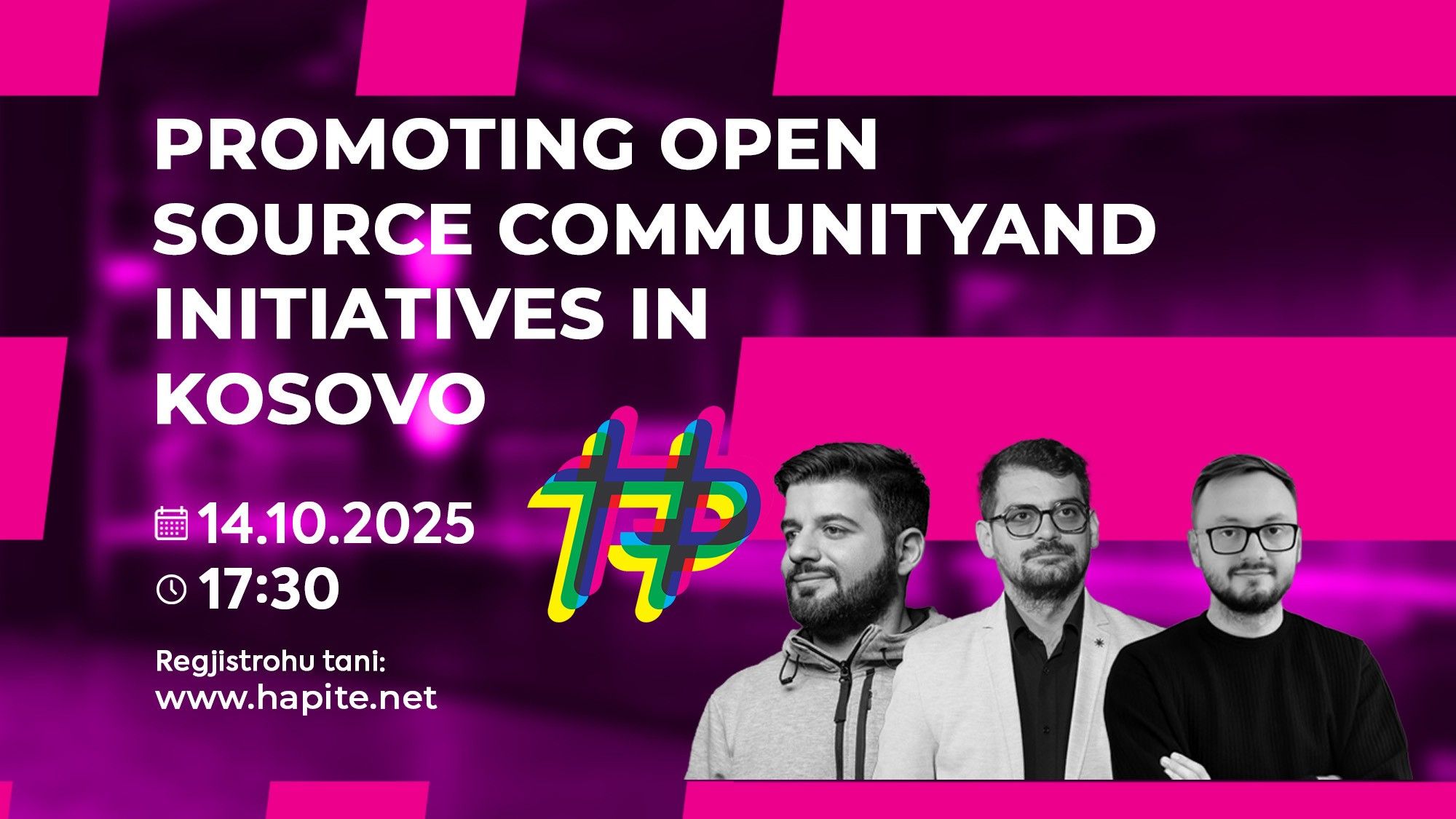 Ngjarja mbahet këtë të marte (14 tetor), nga ora 17:30, në hapësirat e HaPiTe Space. Ky event do të mbledhë profesionistë të teknologjisë, ndërmarrës dhe entuziastë të open source për të diskutuar mënyrat se si Kosova mund të zhvillojë një ekosistem të qëndrueshëm të bazuar në bashkëpunim, transparencë dhe ndarje të dijes.