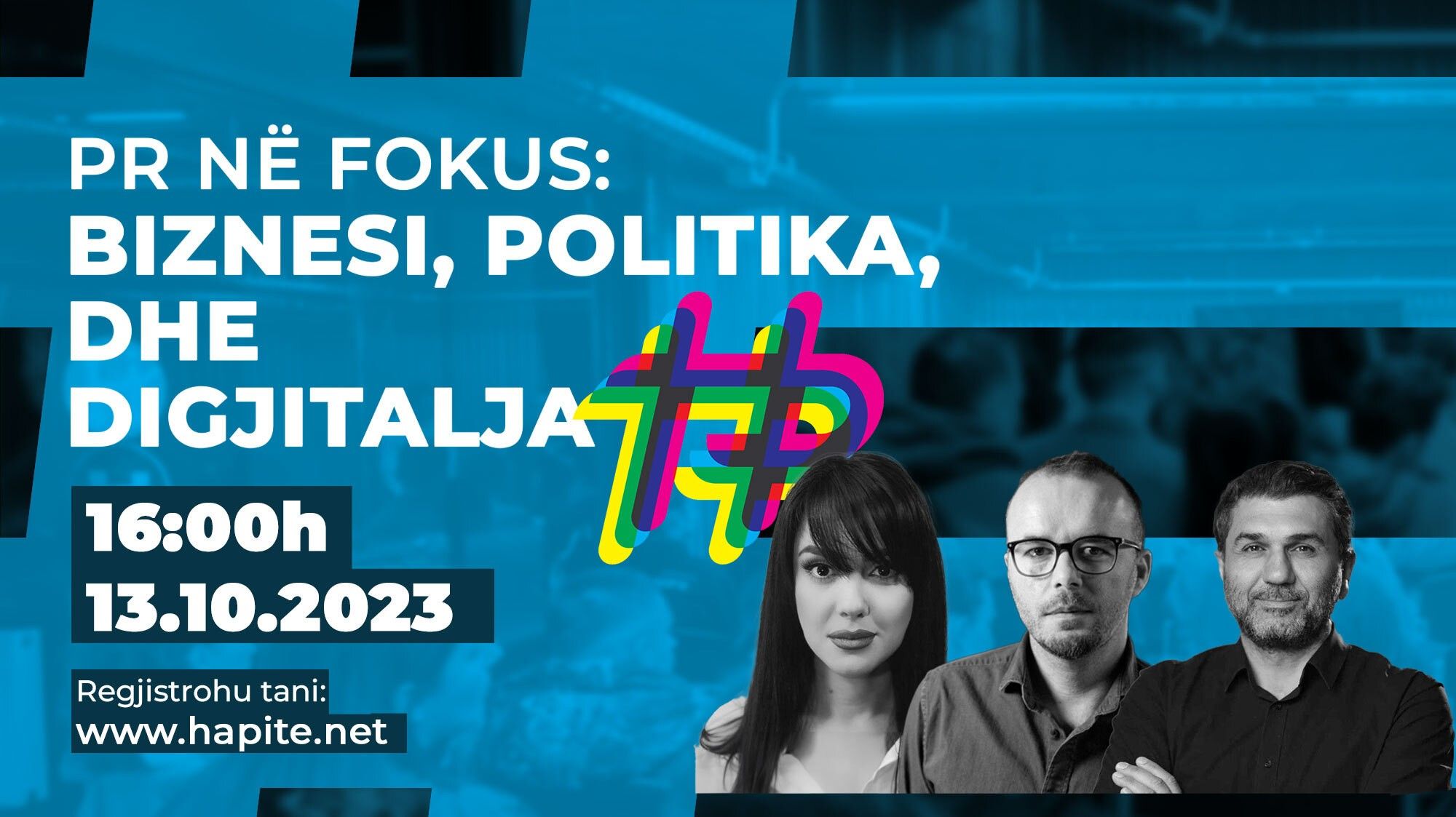 Këtë të premte në HaPiTe Space, do të ketë një diskutim të veçantë mbi rëndësinë dhe ndikimin e marrëdhënieve me publikun në biznes, politikë dhe dixhitalizim. Ngjarja do të zhvillohet në ora 16:00, dhe për të mbledhur njohuritë dhe përvojën e tyre, të ftuar do të jenë folës të njohur në fushën e PR. Në panelin e diskutimit, do të ketë tre personalitete të shquara duke filluar nga Fitim Mulolli - Themelues dhe CEO në Polcon, Alban Kastrati - Partner Menaxhues në Republika Communications Agency dhe Kaltrina Ajeti – Drejtoreshë ekzekutive në IKMK.