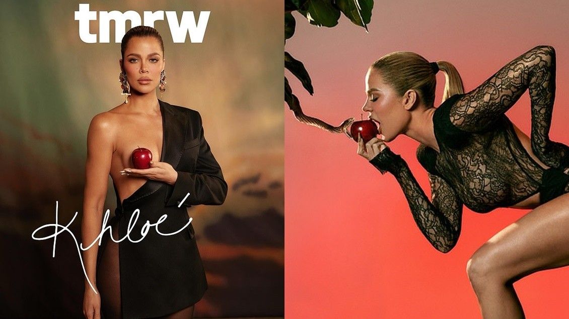 Khloe Kardashian pozon me një mollë mbi gjoksin e saj të zhveshur për kopertinën e re të revistës “tmrw”
