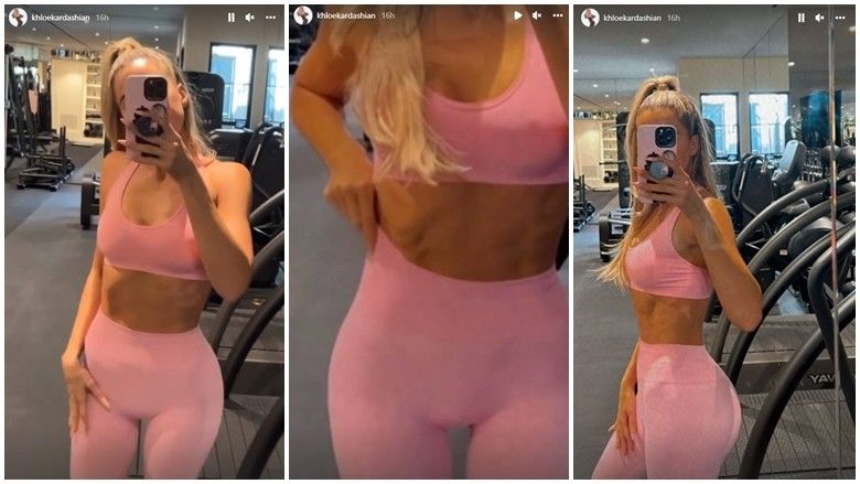 Khloe Kardashian vendos në pah barkun e saj ndërsa stërvitet me veshje rozë