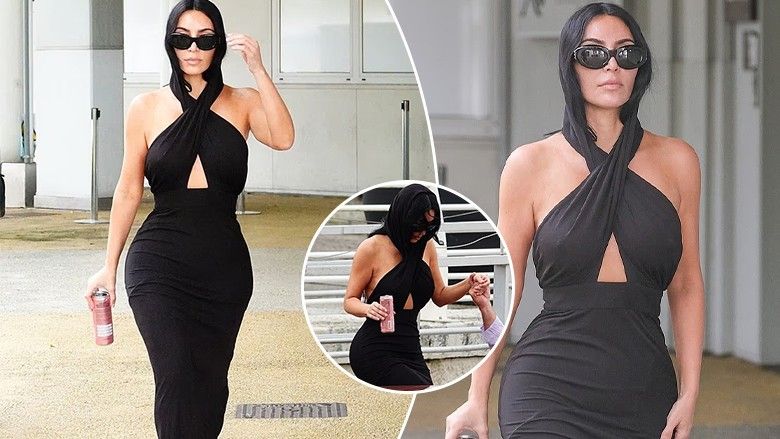 Themeluesja e Skims, 44 vjeç, kishte veshur një fustan të zi me jakë të lidhur pas qafe, i cili theksonte çdo detaj të figurës së saj. Veshja kishte një prerje të vogël në bel, detaj me kapuç dhe shpinë krejtësisht të hapur, që i ekspozonte anët e kraharorit gjatë zbritjes në aeroportin e qytetit.