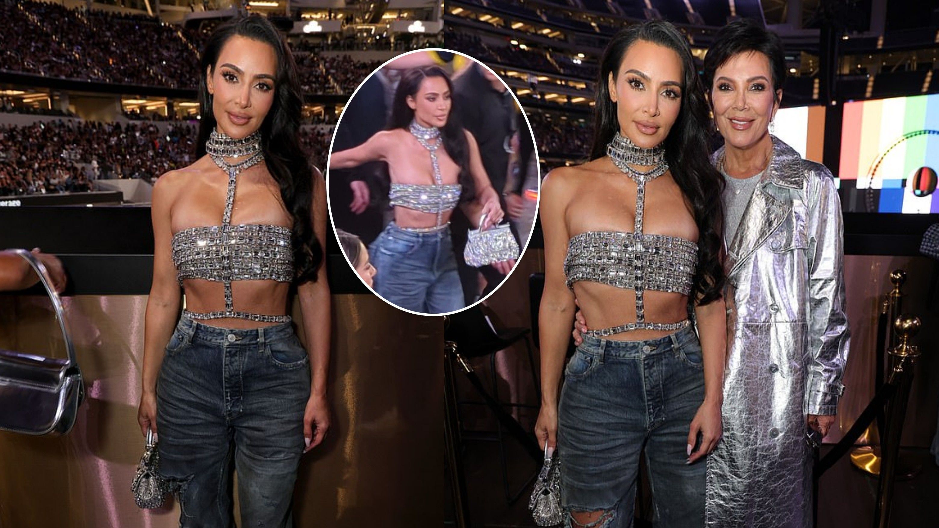 Kim Kardashian kishte veshur një kostum argjendi teksa me familjen e saj morën pjesë në turneun e Beyonces në Los Angeles "Renaissance" të hënën në stadiumin SoFi.