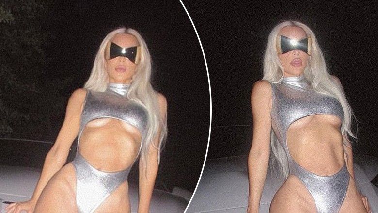 Themeluesja 41-vjeçare e markës “Skims” pozoi para automjetit luksoz, ndërsa shfaqte fizikun e saj mbresëlënës me një kostum ngjyrë argjendi.