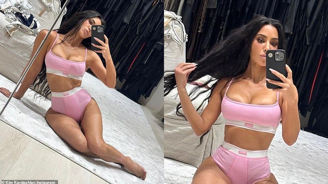 Kim Kardashian shfaq belin e saj të hollë me të brendshme rozë për një 'selfie' të zjarrtë