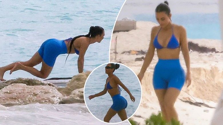 Kim Kardashian thekson të pasmet dhe linjat e trupit në paraqitjen provokuese në plazh