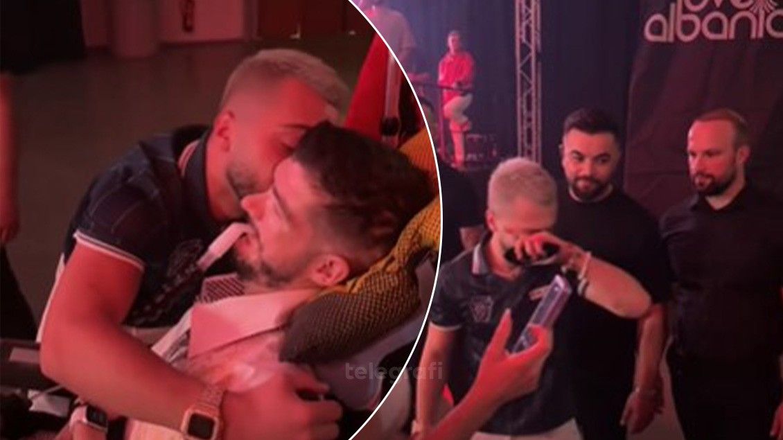 Momenti kulmoi me një përqafim të ngrohtë dhe me fjalët plot emocion të artistit: “Zoti të ruajtë”, përpara se të shpërthente në lot, ndërsa publiku e duartrokiste me emocion dhe respekt.