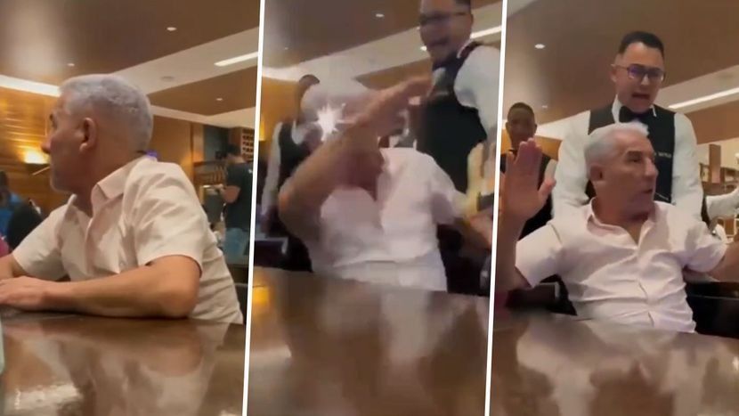 Fatmirësisht, kamerieri kishte reflekse të shpejta, kështu që e shpëtoi situatën dhe burri e kuptoi se për çfarë po fliste dhe filloi të qeshte.