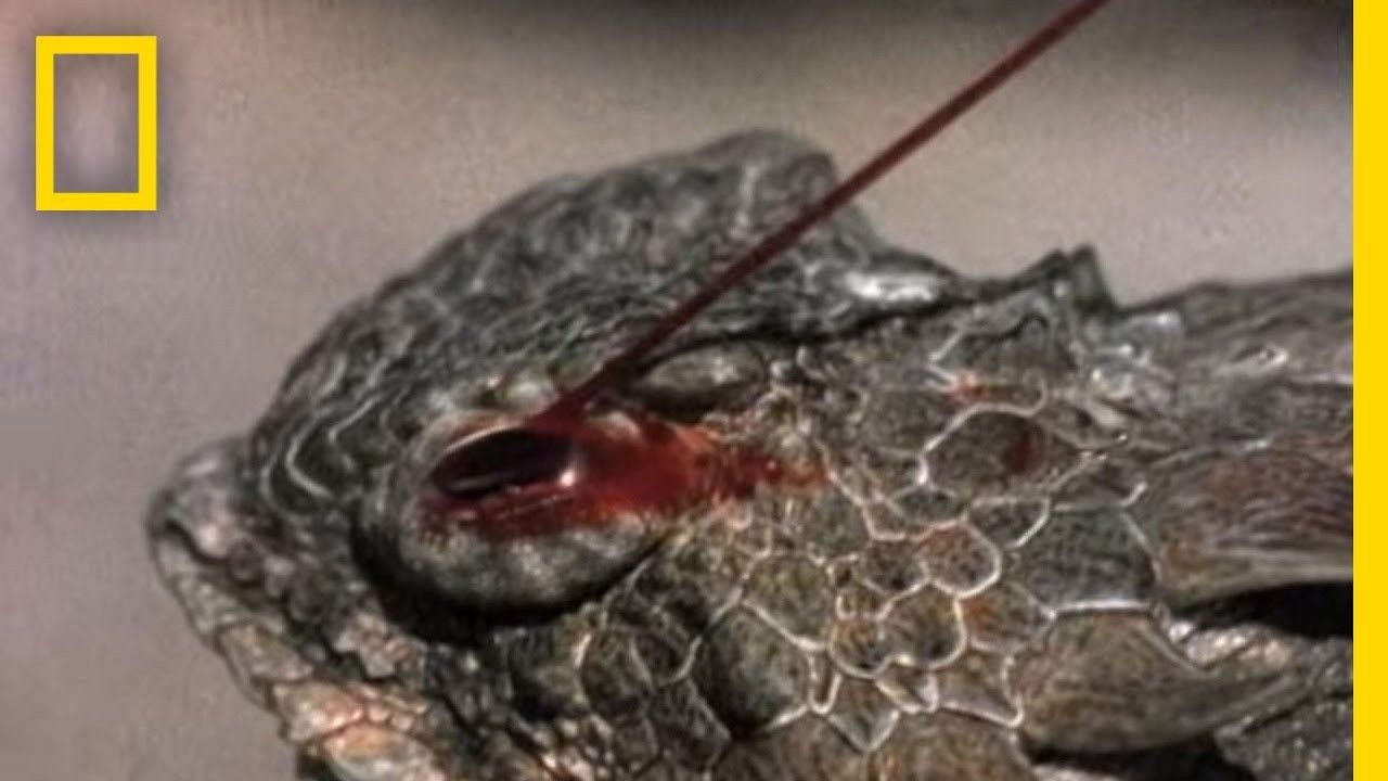 Kur membranat shpërthejnë, nga sytë e hardhucës del një rrjedhë gjaku. Procesi quhet auto-hemorragji.