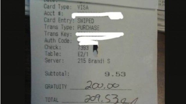Klienti i panjohur duhej të paguante nëntë dollarë, por faturës ia shtoi edhe dyqind dollarë për kamerieren.