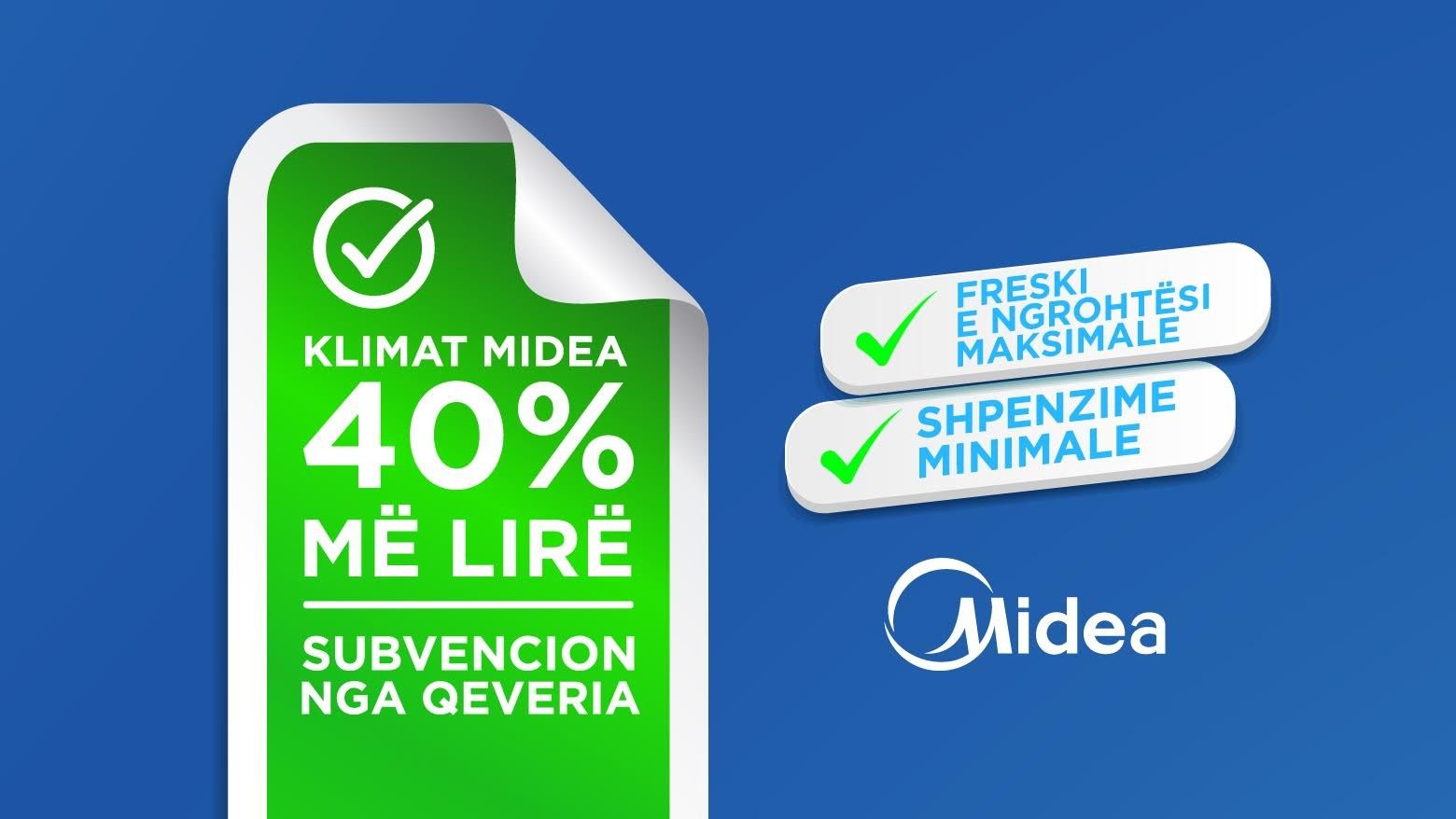 Edhe këtë vit, sikur vitin e kaluar, Qeveria subvencionon nëse bleni pajisje efiçiente për ngrohje gjatë dimrit dhe freski gjatë verës.Bleni klima Midea përfitoni 40% subvencion nga Qeveria, po ashtu termopompat 20% më lirë ose maksimum deri në 2000 Euro të vlerës së faturës.Në kohën që po jetojmë nuk mjafton që klimat të jenë veç kualitative, nëse ato nuk janë edhe efiçiente, këto dy veçori tregojnë se sa serioz është një brend i klimave.Nëse po kërkoni klimatizim perfekt, zgjidhja më e mirë për ngrohje dhe ftohje vjen nga brendi Midea, lideri global në sistemet e klimatizimit, e cila poashtu është lidere në efiçiencë të energjisë elektrike dhe i plotëson 100% kushtet e vendosura nga Qeveria për subvencionim.Pse Midea është zgjedhja më e mirë për subvencionimin e këtij viti?Midea, me përvojën dhe inovacionin e saj, ka zhvilluar kondicionerë dhe termopompa që ofrojnë një eficiencë të jashtëzakonshme energjetike, me një efikasitet që varion deri në A+++, kondicionerët Midea janë në gjendje të kursejnë deri në 70% të energjisë elektrike, ku përveç përfitimit të 40% subvencion nga Qeveria, ju ulni ndjeshëm faturën tuaj të energjisë elektrike.Kondicionerë të përshtatshëm për çdo stinë dhe ambient të rehatshëm mund t’i gjeni në dyqanet e bashkëpuntorëve nëpër qytet e ndryshme të Kosovës, ku cilësia, siguria, jetëgjatësia dhe efiçienca janë prioritet.Kujdes nga klimat e pa kontrolluara ne treg, sigurohuni që klimën që po blini t'i plotësojë kushtet për subvencionim.Nëse keni mëdyshje, konsultoni profesionistët!Për më shumë detaje vizitoni faqen zyrtare të Midea Kosova në Facebook!
