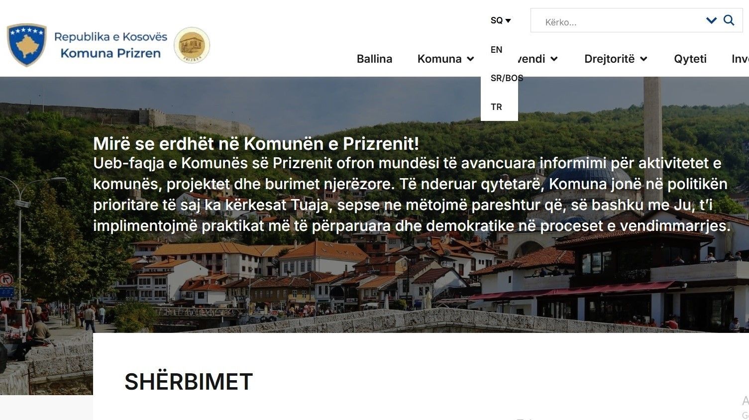 Komuna e Prizrenit rishtazi ka lansuar ueb faqen e re zyrtare, dhe aktualisht aty figuron në një vend opsioni për gjuhën serbe dhe boshnjake. /Telegrafi/