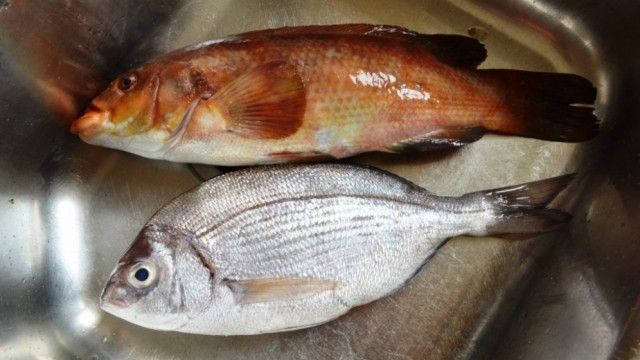 1. Pastroni peshqit, hidhni rigon, kripë e piper dhe lyejini me vaj dhe lëng limoni