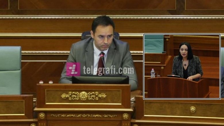 Por gjatë fjalës së saj, ndërhyri kryetari i Kuvendit, Glauk Konjufca, i cili i kërkoi llogari se çka është duke bërë.