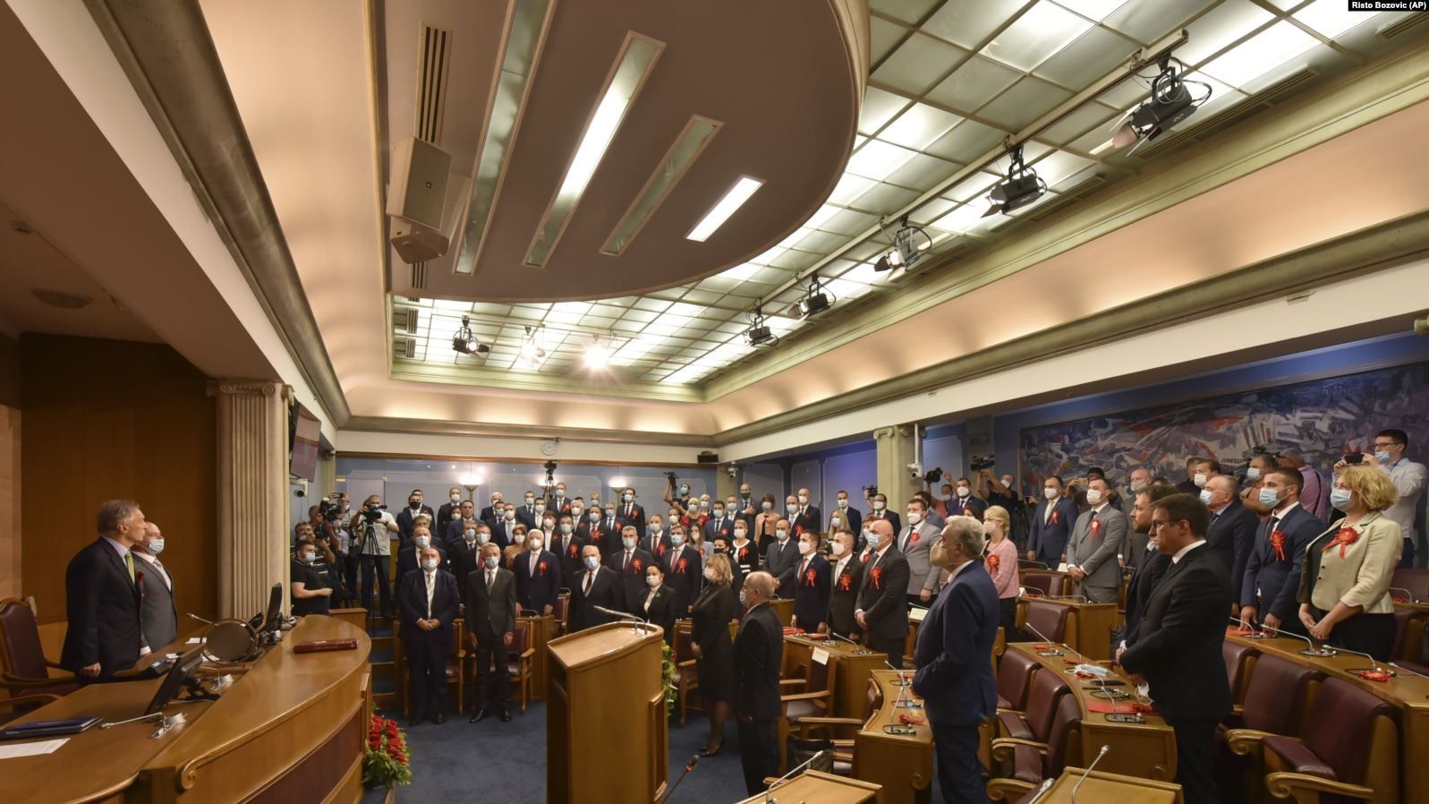 Seanca konstituive filloi me intonimin e himnit kombëtar, dhe në këtë ceremoni nuk morën pjesë disa anëtarë të Frontit Demokratik, megjithatë, udhëheqësi i listës "Për Ardhmërinë e Malit të Zi", Zdravko Krivokapiq, me deputetët dhe mysafirë të tjerë të pranishëm respektuan himnin kombëtar.
