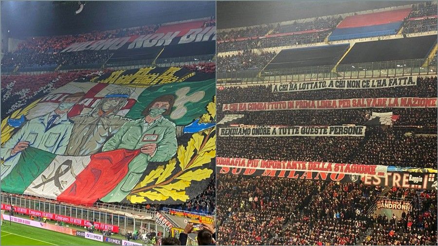Ultrasit e Milanit në Curva Sud ua kanë dedikuar koreografinë e Derby della Madonnina ekipeve emergjente, stafit mjekësor dhe atyre që humbën jetë, gjatë pandemisë së COVID-19.