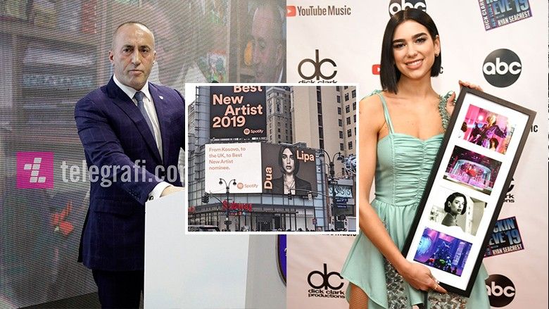 “Dua Lipa në kulmin e sukseseve të saja, në sheshin kryesor të New York, Time Square, pjesë e kampanjës nga rrjeti muzikor Spotify: “Nga Kosova në Britani të Madhe në nominimin për ‘Artisten e re më të mirë”. Faleminderit Dua”, janë fjalët e kryeministrit Haradinaj në Facebook.