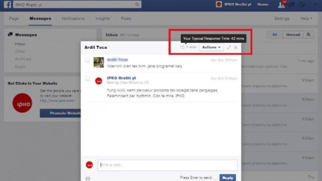 Sipas SocialTimes, me veglën e re të Facebook, administruesit e faqeve tashmë mund të mësojnë për kohën dhe shpejtësinë e përgjigjeve të bëra nga faqja në mesazhet private të cilat i dërgojnë fansat e saj, apo përdoruesit e tjerë të rrjetit social. (Telegrafi)
