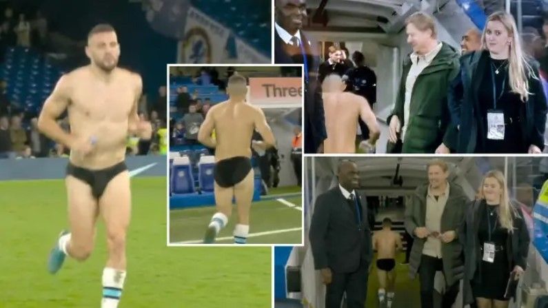 Teksa kamera shikonte në të gjithë fushën e Stamford Bridge në fund të ndeshjes, Kovacic mund të shihej duke vrapuar drejt tunelit, thuajse tërësisht i zhveshur.