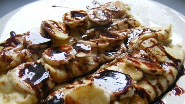 Nga brumi do të nxirrni 8 krepe. Shkrin i gjalpin e mbetur në një tigan ku do të skuqni pakëz bananet e zhytura në lëng. Lërini të skuqen 2 minuta në çdo anë. Hiqmi nga tigani dhe vërini në një vend të ngrohtë. Zbrazni lëngun e marinuar në tigan dhe ngroheni në zjarr të ngadaltë.