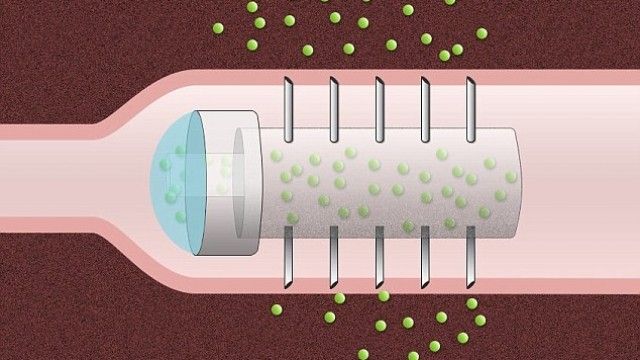 Pilula e mbështjellë me gjilpëra të vogla, mund të merret në formë orale dhe depërton në stomak përmes zorrëve.