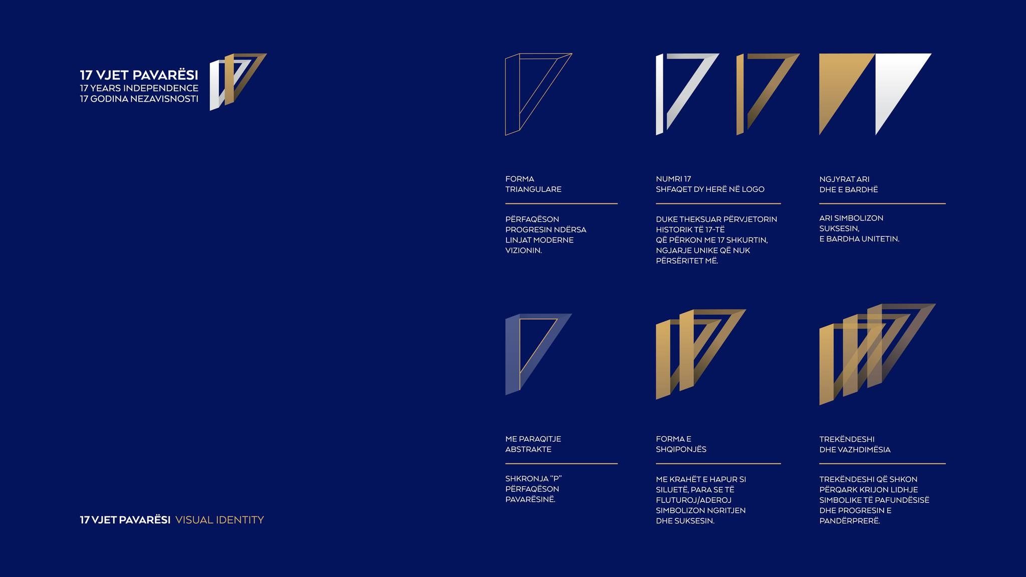 "Këtë vit, patëm nderin të krijojmë emblemën zyrtare për 17-vjetorin e Pavarësisë së Kosovës—një simbol që nuk përfaqëson vetëm dizajn, por shpirtin e një kombi. Në shikim të parë, dy forma të guximshme qëndrojnë krah për krah, një jehonë e ndjeshme e numrit 17. Një reflektim i kohës—17 vite pavarësi, festuar më 17 shkurt. Dy shtatëmbëdhjeta, të ndërthurura në kuptim, qëndrojnë si një homazh për rrugëtimin e kaluar dhe atë që ende na pret", thuhet në njoftim.