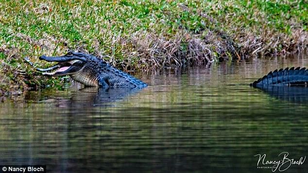 Nancy Bloch po fotografonte shqiponjat në Floridë të Shteteve të Bashkuara, për t’i postuar në ueb-faqen e saj, kur pa një krokodil që doli prej liqeni dhe shkrepi aparatin që ta ketë në fotografi.