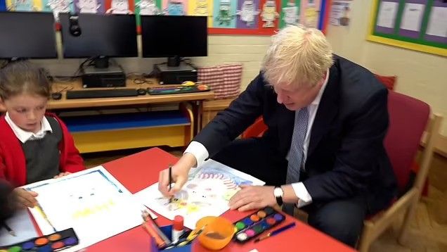 Kryeministri britanik tregon aftësitë artistike gjatë vizitës në një shkollë të Londrës