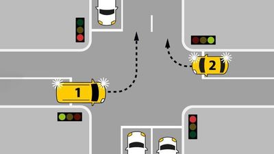 Kryqëzimi: Dy automjete kthehen në të njëjtën rrugë – kush kalon i pari dhe në cilën korsi?