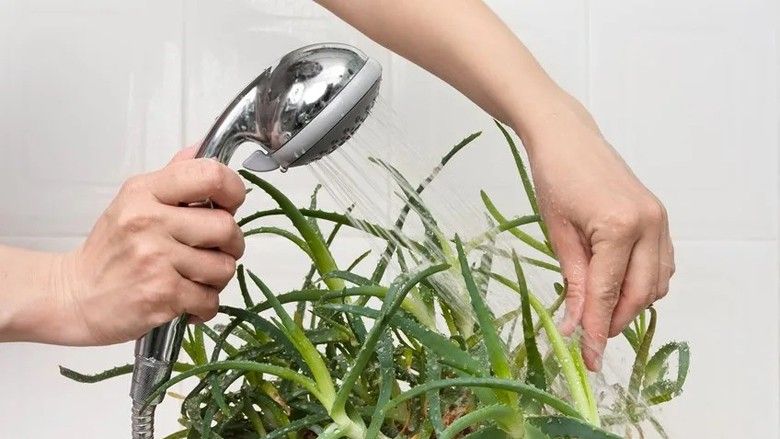 Kjo është mënyra më frytdhënëse, mirëpo edhe “më e komplikuar” (saksinë duhet dërguar në banjë, ndërkaq pas dushi prisni që të thahen para se t’i ktheni në vendin e mëparshëm), andaj më mirë është që fletët t’i fshini ashtu siç bëni me pluhurin nga mobiliet, por vetëm me lëvizje të buta.
