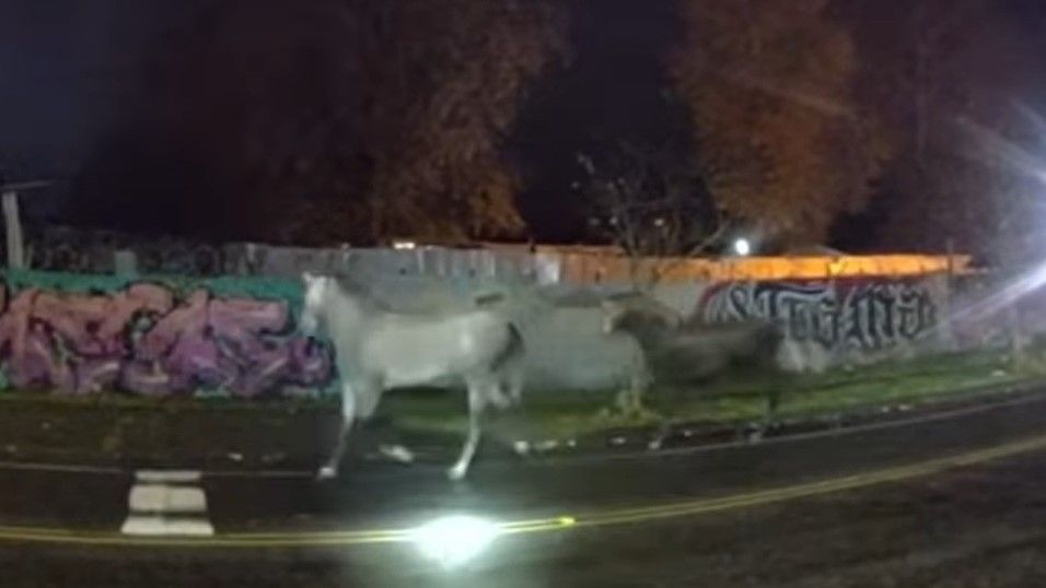 Në Tacoma të Washingtonit, policët u thirrën për të trajtuar një situatë jashtë detyrave të tyre të zakonshme kur dy kuaj u gjetën duke vrapuar të lirë nëpër rrugët e qytetit.