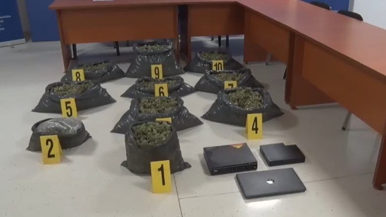 “Me datë 16.02.2022, rreth orës 14:15 minuta, me rastin e ekzekutimit të urdhër kontrollit, në objektin e cekur është zbuluar vendi ku bëhej kultivimi i bimës narkotike, pajisjet dhe materialet për kultivimin e bimës narkotike si dhe rreth 32 kg, substancë të dyshuar narkotike të llojit marihuanë, e cila ishte në procesin e tharjes, si dhe 2059 saksi – vazo, që kishin të mbjellura bimë të dyshuara të llojit kanabis sativa, e po ashtu në vendin e ngjarjes janë zënë në flagrancë të gjithë të pandehurit”, thuhet tutje në komunikatë.